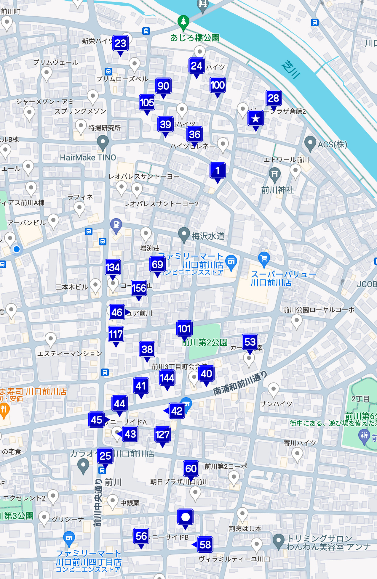 | 24 | 前川3-54-20 | 舗装 | 10,000円 | 無 | 満 | ー | 普 | 無 |
