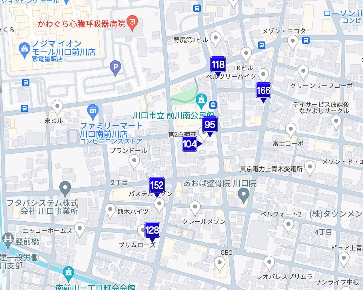 | 152 | 南前川2-12-7 | 舗装 | 12,000円 | 無 | 満 | ー | 普 | 無 |
