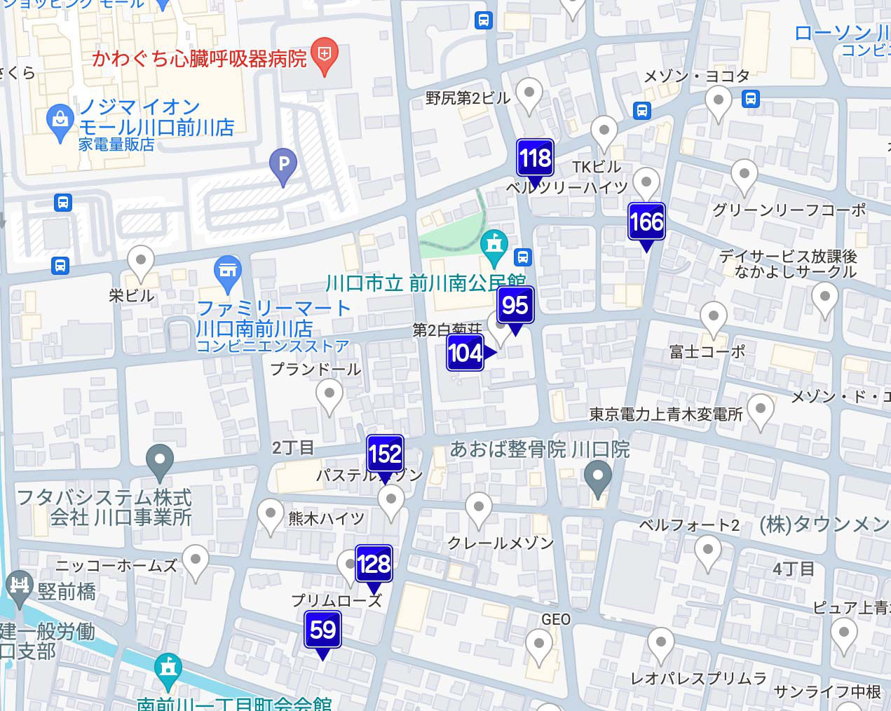 | 128 | 南前川2-10-6 | 砂利敷き | 12,000円 | 無 | 満 | ー | 普 | 無 |